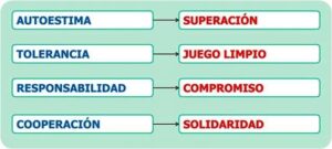 Los valores no se enseñan; se aprenden, a través de la propia vivencia y reflexión, bajo las propuestas educativas que realiza la institución o el propio educador, técnico deportivo o el padre. Se trata de trasladar actitudes a los alumnos que participan en los proyectos deportivos. Nosotros hemos planteado cuatro valores claves: Autoestima, Tolerancia, Responsabilidad y Cooperación.